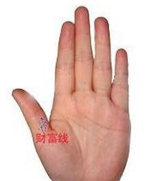 财富线——在大拇指的第二节,不论横纹或直纹,纹越多表示钱财累积越多。