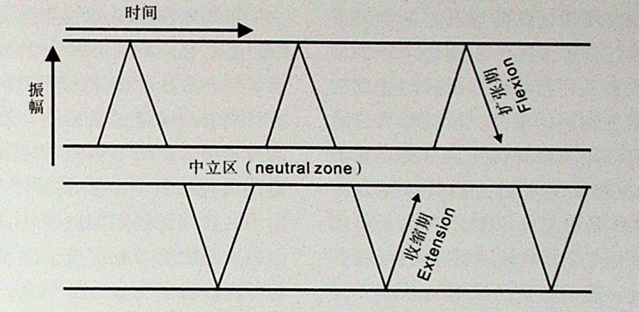 而当出现某一障壁(功能障碍或结构性问题)时,这种正常且规律的活动就会出现紊乱。从而出现振幅的变化以及频率的变快或者减慢。如图即是颅骶椎脉动速率的增快以及振幅的减小。