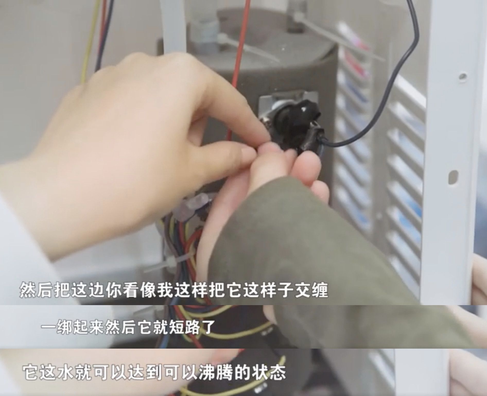 比如,在走红的“饮水机煮火锅”视频中,她所采用的方法是把电线进行交缠,使其短路,从而能实现让饮水机煮沸的效果。这条视频当时在全网播放量接近一亿。