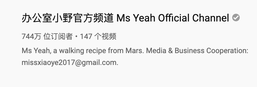 目前,她在微博上有819万粉丝,YouTube上有744万粉丝,抖音粉丝数为2500多万,主要依靠广告变现。据第三方平台Noxinfluencer的统计,“办公室小野”的视频观看量总计超过16亿。她是YouTube上排名第一的中国网红。