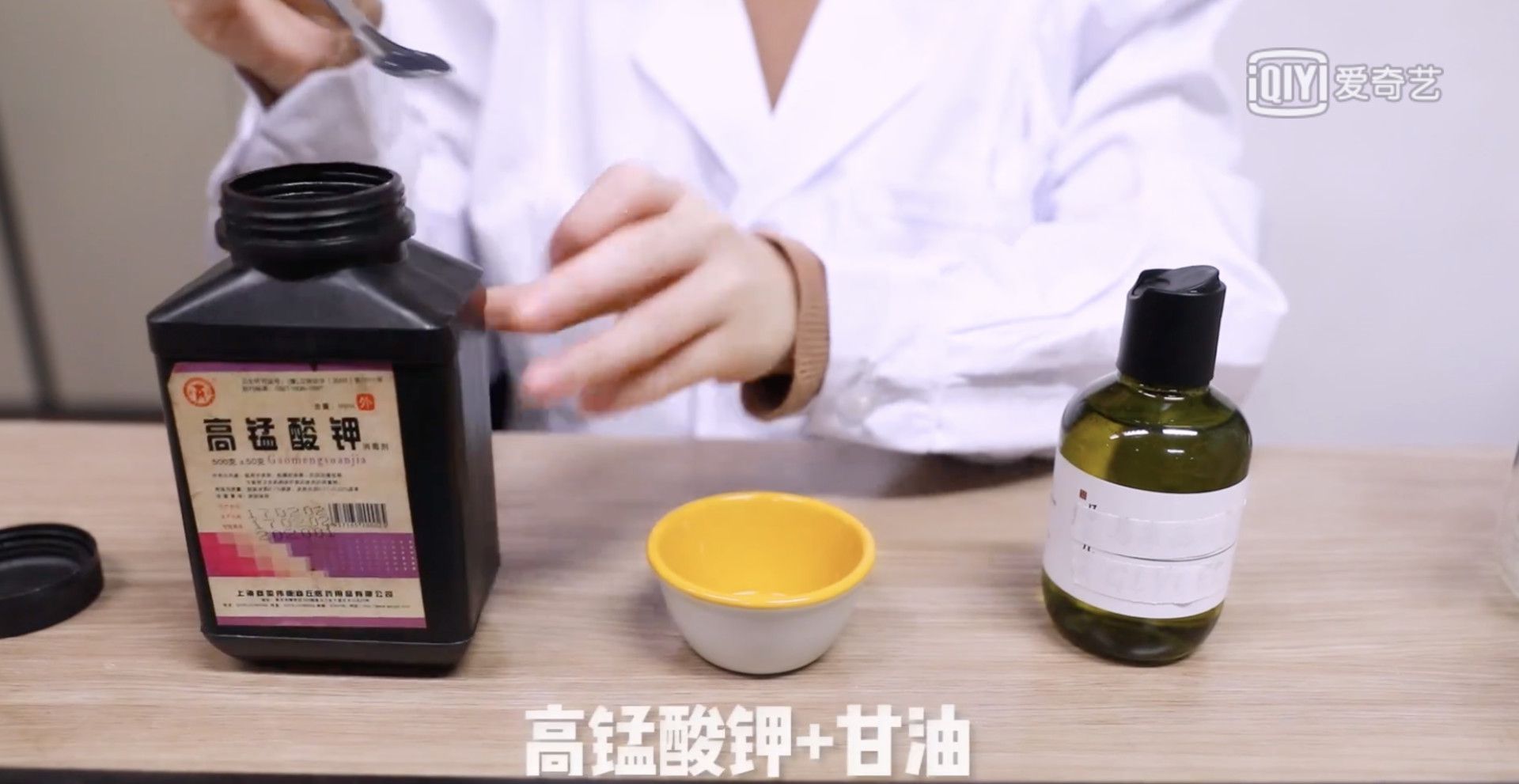 高锰酸钾+甘油,来自小野视频截图