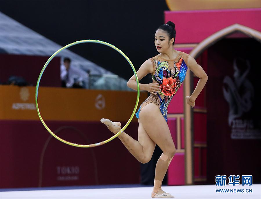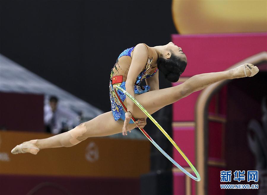 9月16日,中国选手赵雅婷在个人全能预赛圈操项目的比赛中。 当日,第37届世界艺术体操锦标赛在阿塞拜疆首都巴库拉开帷幕。来自61个国家和地区的300多名艺术体操运动员将参加为期一周的角逐。作为东京奥运会资格赛,个人全能前16名和团体前5名将获得东京奥运会参赛资格。本届艺术体操世锦赛中国队派出了9名选手,其中刘佳慧、赵雅婷、王凌云将参加个人项目,刘鑫、黄张嘉洋等6人参加集体项目角逐。 新华社发(巴巴耶夫摄)