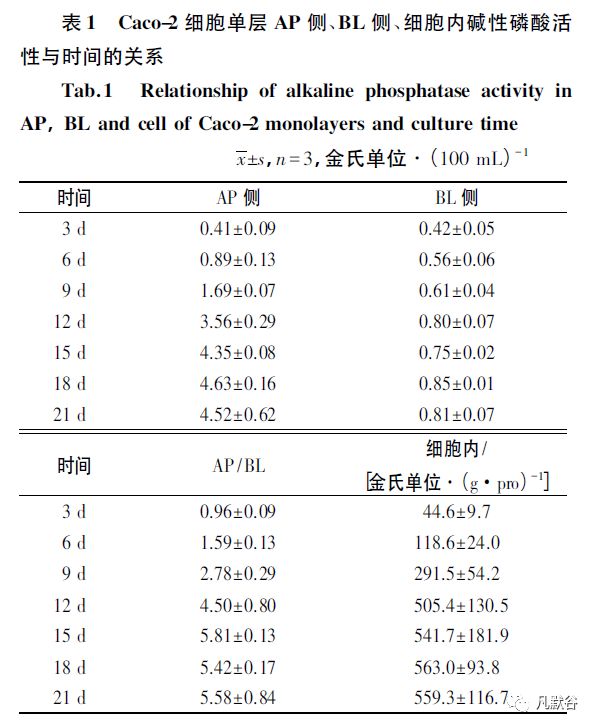 对细胞内碱性磷酸酶活性的测定也验证了细胞在分化过程中,碱性磷酸酶活性渐渐增大,细胞慢慢产生了极性,可用于吸收和转运实验。