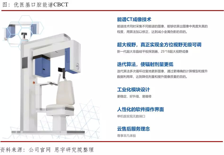 在此前的《数字化隐形正畸:正畸行业新风口》一文中,我们讲到,口腔产业的数字化越来越成为趋势,而口腔CBCT作为数字化口腔产业中的重要一环,与传统螺旋CT相比,具有空间分辨率更高、数据采集时间更短、曝光剂量更小、拍摄成本更低等优点,逐渐成为主流的口腔影像设备。虽然目前国内高端市场仍以外资品牌为主,国产品牌主要集中在中低端市场,但国产品牌在产品性能上不断进步,同时充分利用在产品性价比上的优势,我们有理由相信,在未来数字化口腔产业的发展过程中,将会崛起越来越多的国产力量。