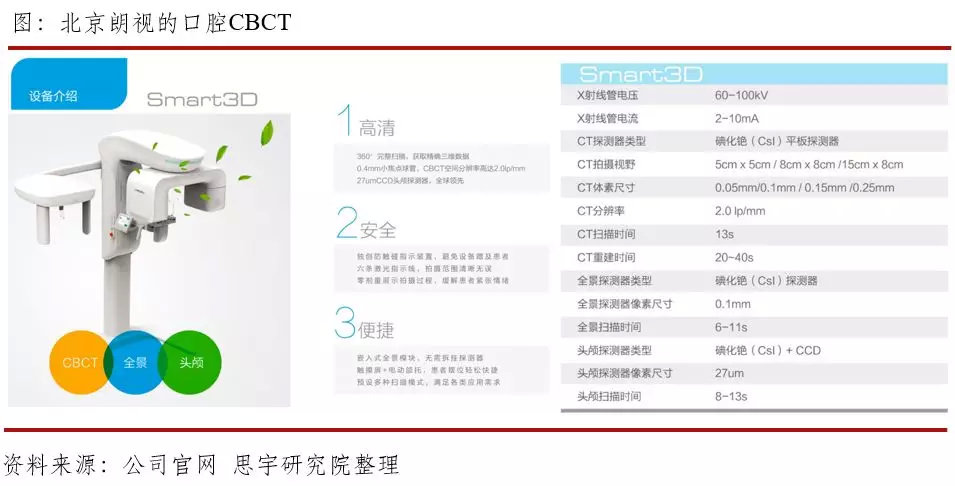 随着消费升级和人们口腔保健意识的提升,国内口腔消费正呈现出爆发式的发展,尤其是正畸和种植业务,口腔CBCT能够帮助医生更加精确地对口腔内部三维建模,更加清晰的描绘口腔内血管位置和牙颌骨厚度。因此,我们有理由相信,未来CBCT在口腔诊所的渗透率将越来越高,其替代全景机和传统螺旋CT也将是行业的大势所趋,而在这个过程中,我们更加期待越来越多的崛起中的国产力量!
