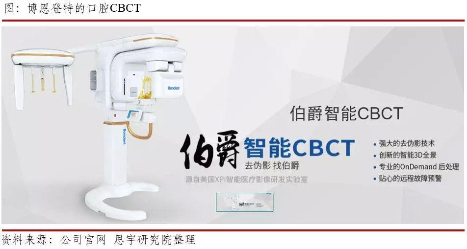博恩口腔集团是一家为口腔医疗机构提供“一体化服务”的平台。博恩登特旗下子公司博恩中鼎以口腔影像设备研发为主,推出国内首台中视野口腔“云CT”产品平台,并推出Bondream 3D-1010系列产品,于2016年3月通过CFDA注册。