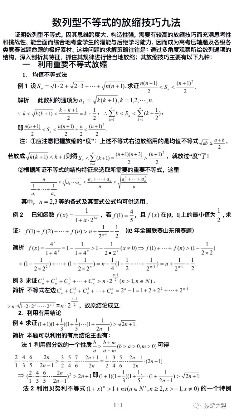 高中数学:数列型不等式的放缩技巧九法
