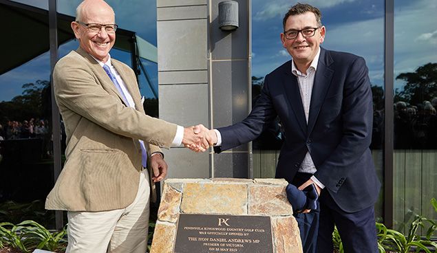 董事长Rob Dowling 和维多利亚州总理Daniel Andrews在2019年5月正式为半岛金斯伍德高尔夫球俱乐部揭幕