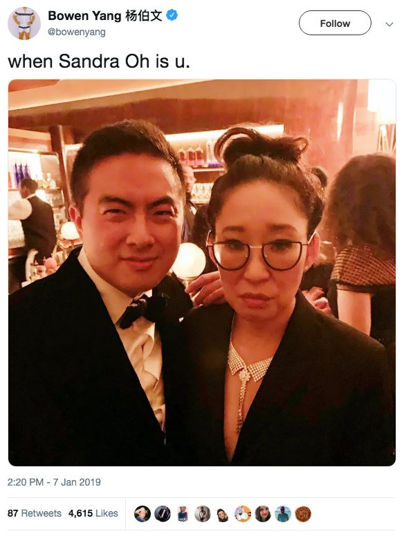 2019年3月30日「周六夜现场秀」中,杨伯文初次露脸就与Sandra Oh配戏:他出演朝鲜领导人金正恩,她扮演他的翻译官。