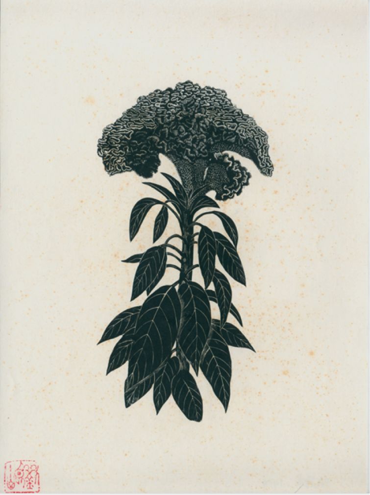 百花齐放之鸡冠花,刘岘 ,木口木刻,1959