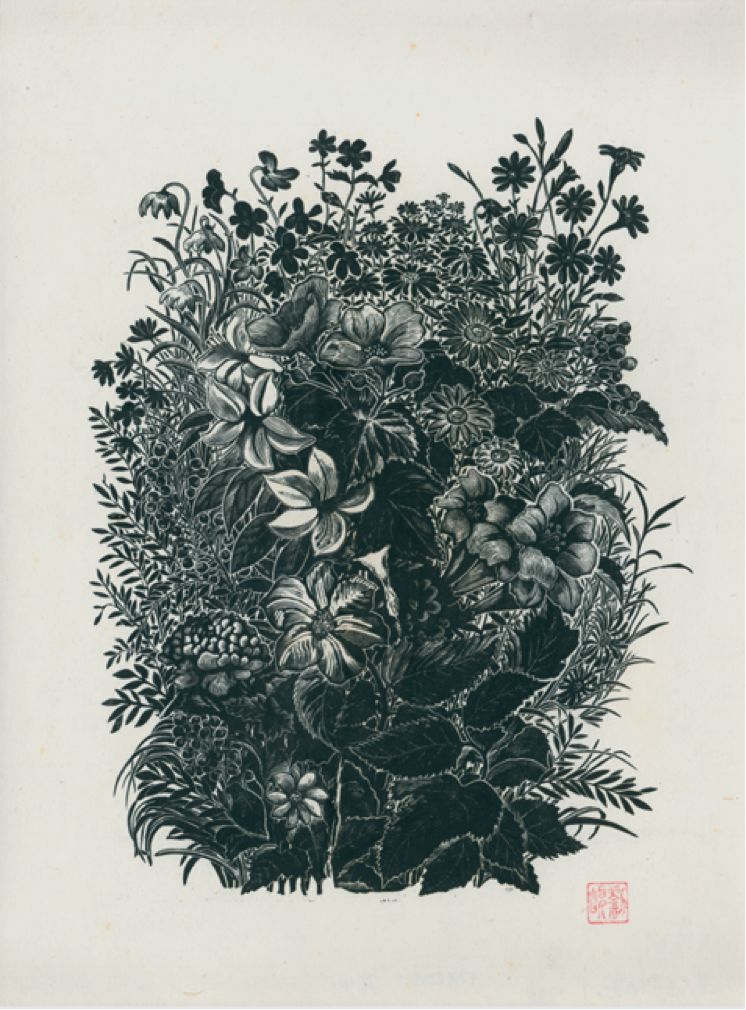 百花齐放之其他一切花,刘岘 ,木口木刻,1958