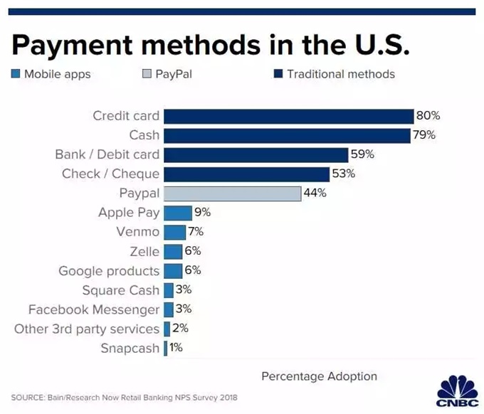 尽管美国人对于智能机的依赖越来越大,但是大多数美国人依旧不用手机完成支付。