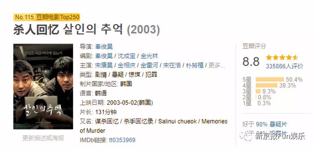 后来,导演奉俊昊根据实际调查资料与采访记录等改编成了电影。导演在还原案件的同时,加入了自己特有的风格叙事,无处释放的压抑氛围、令人窒息的悬念以及带有现实政治的隐喻,让这部影片常年占据韩国电影榜单的NO.1。