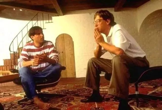 1991年,苹果前CEO乔布斯和微软帮主比尔·盖兹交谈。