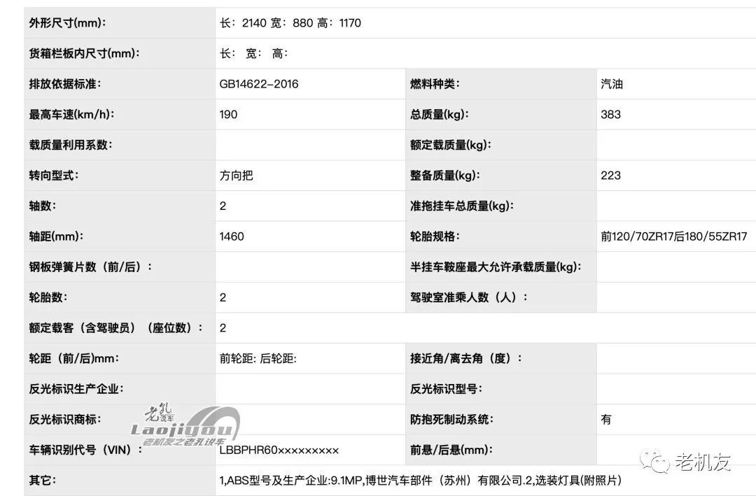 根据工信部所公布的数据显示,幼狮800的整备质量为223kg,最高车速可以达到190km/h,前轮尺寸为120,后轮尺寸为180。发动机部分采用了实际排量为754cc,最大功率为56kw,最大马力约为75.6匹的动力配备,从发动机参数可以看出应该是采用了贝纳利752S同款的动力平台。