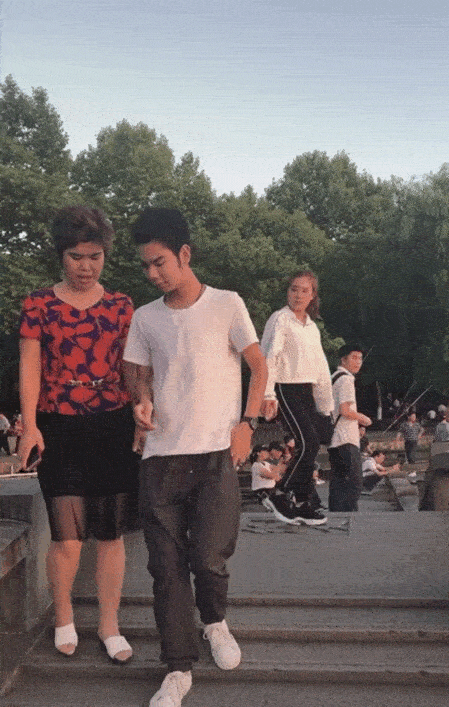 小吴和妈妈的关系非常不错,他看到妈妈有些介意被拍照,就安抚性的和妈妈对视一下,然后母子俩默契地低头走下台阶,妈妈也不再去理会路人的镜头了。