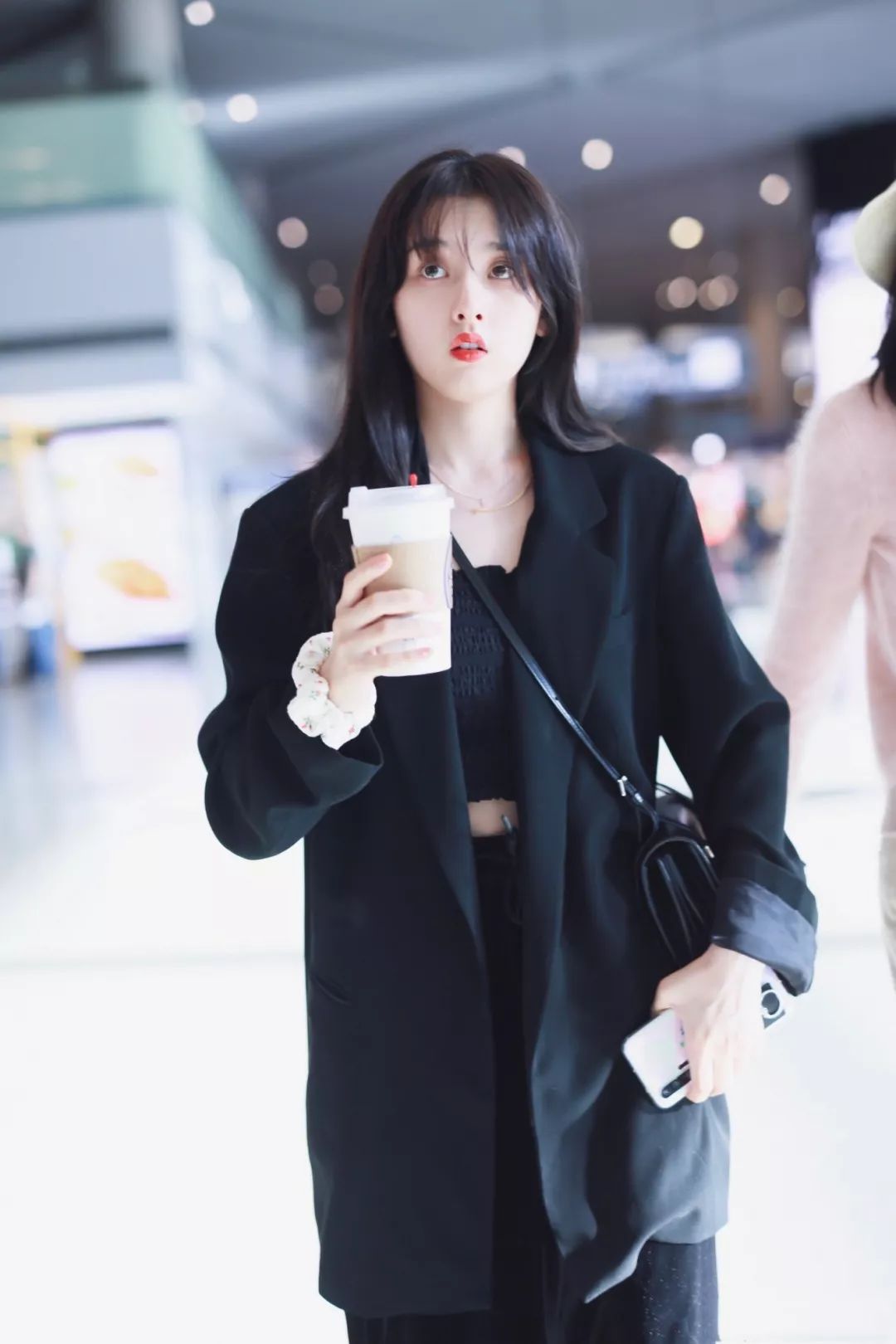 来看这回她的机场look,宽松的oversize西装我们并不陌生,是当下不少时髦女星的出门搭配,宋祖儿则是选择了一件百搭的黑色绝对是经典稳妥的。同时宽松肥大的样子更是衬的她身材纤细不少!