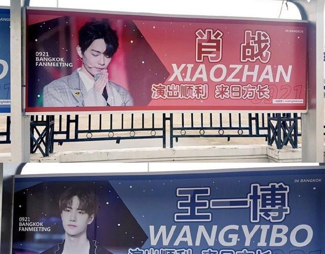 在泰国曼谷的街头、商场、公交车站台,不时都会看到粉丝剪辑出来的应援王一博、肖战的视频的播放。