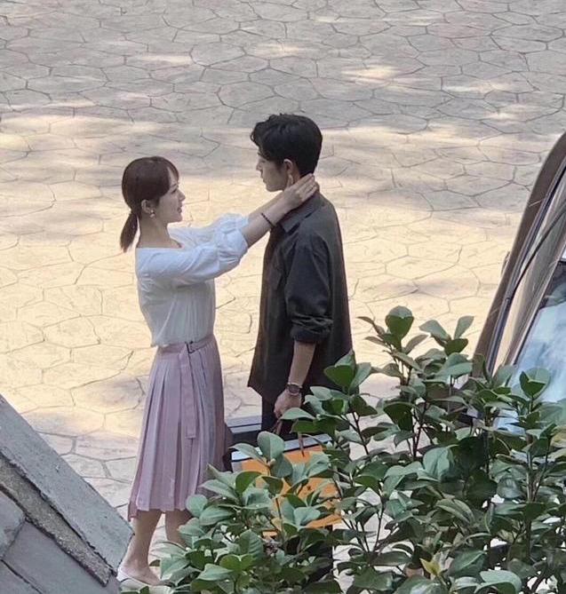 肖战刚跟杨紫结束了电视剧《余生请多指教》里情侣恩爱亲密戏分的场景拍摄,路透照里,肖战笑对杨紫,杨紫紧紧搂着肖战的脖子。