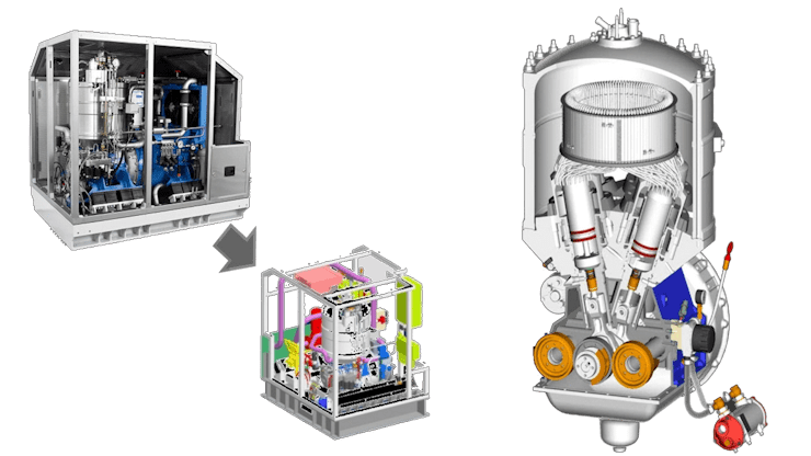 斯特林发动机是一种闭式循环发动机,其工作流体始终处于系统中。能量源用于加热该工作流体,该工作流体又移动活塞并运转发动机。发动机连接到发电机,为电池充电。这里使用的能量源通常是作为氧化剂的液氧和作为燃料的柴油燃烧,以便为工作流体提供热量。然后将废气经过洗涤,释放到海水中去。