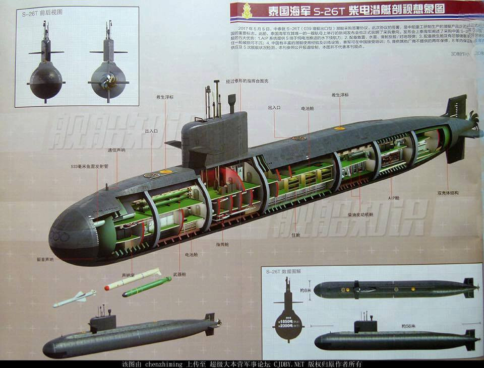 图十八 中国为泰国海军建造的S-26T柴电潜艇装备了国产斯特林AIP系统,可以使水下续航力提高5倍