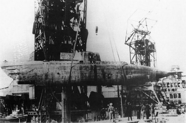 图六 使用沃尔特公司过氧化氢发动机技术的U-1407号潜艇,后被英国人打捞重命名为“陨石”号