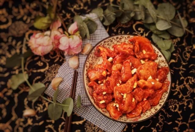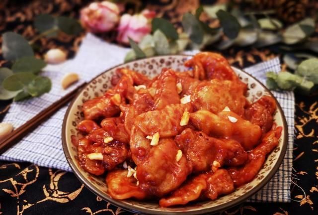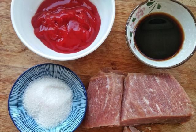 【材料】里脊肉500g,番茄酱100g,糖2勺,陈醋2勺,蒜3瓣,面粉适量,淀粉适量,清水适量