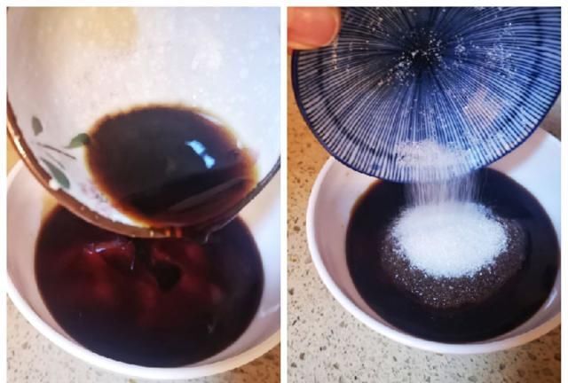 5、番茄酱中加入陈醋和白糖搅均备用。