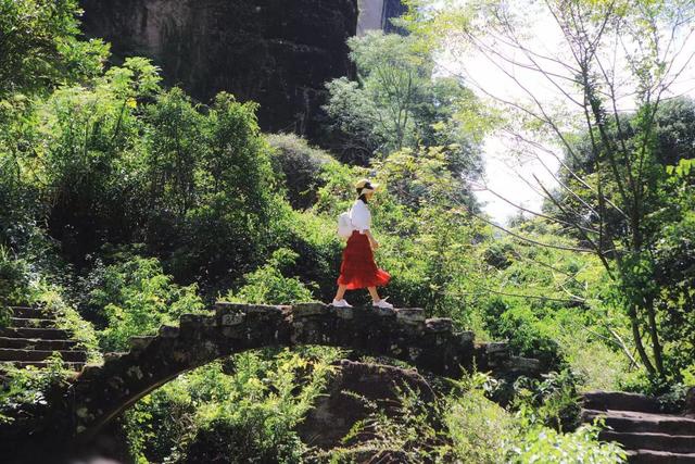这条小路非常幽静,沿途经过的都是茶树,若是你在这里有几棵茶树,那么这辈子还真的不用愁了。在观看大红袍母树的地方,可以品尝5块钱一个的茶叶蛋,用大红袍煮过的茶叶蛋,味道不错。一边吃吃茶叶蛋,一边感受山谷里清凉的风。而在接近路终点的地方,还有一座网红桥,这座桥的名字不知道,因为很多人都特意到这里拍照,尤其是拍婚纱的,所以就被叫做网红桥。