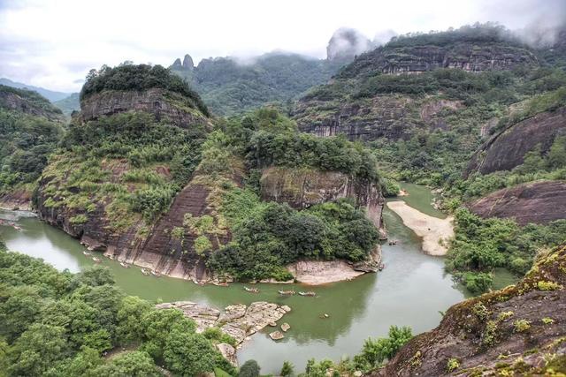 福建就有一处对老外非常有吸引力的地方,就是武夷山。每年日韩游客最多,欧美客人也不少。许多人都是慕名而来,看一看武夷山美景。虽然成名已久,我却第一次来,说实话, 走到天游峰上的时候,我也被眼前九曲风景所震撼:群山环绕奇骏无比,绿色的河水蜿蜒而下,满眼波澜壮阔,这才是壮丽祖国山河。