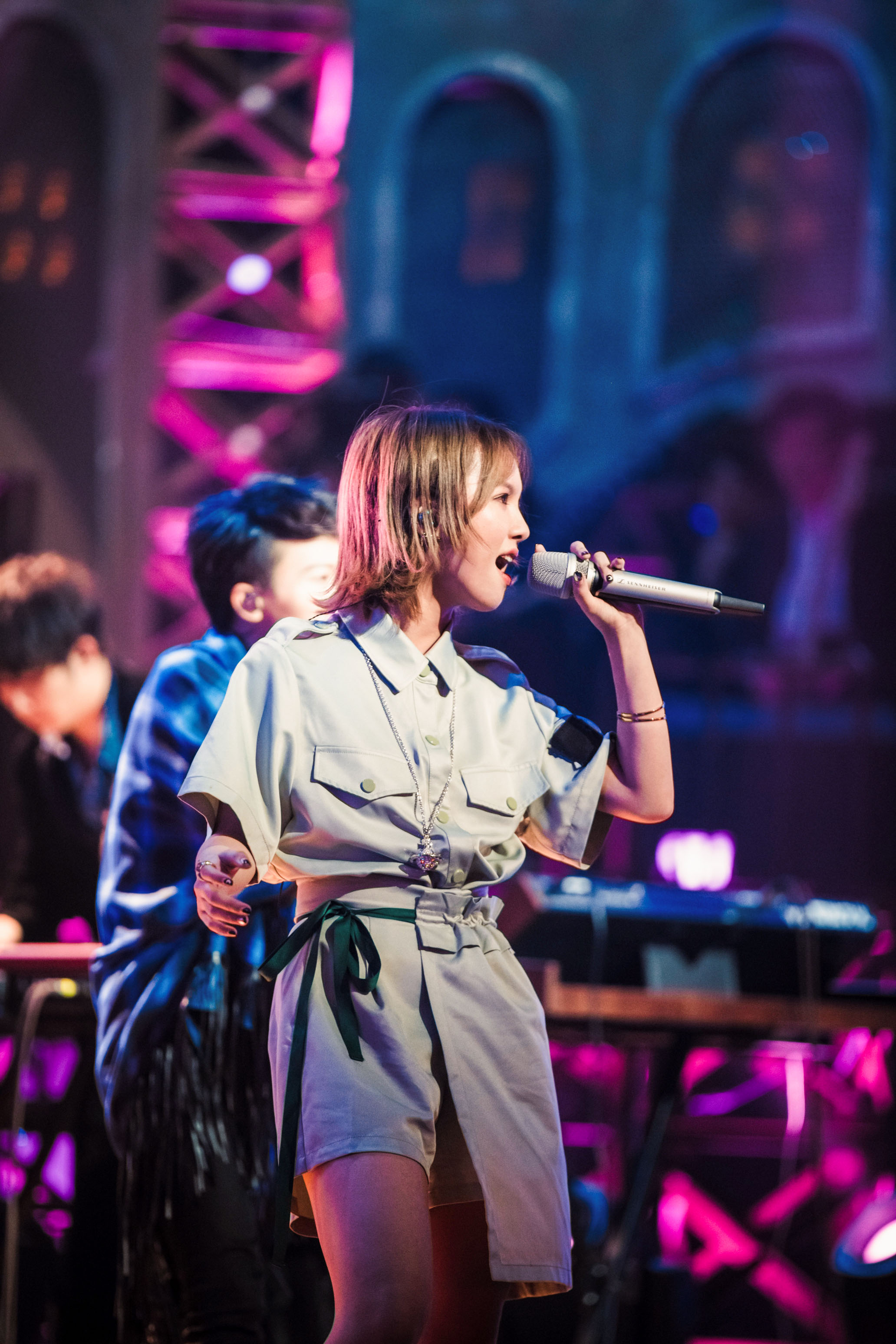 第四次公演舞台,陈乐一身穿衬衫套装搭配帅气马丁靴亮相,俏皮的短发可爱十足,一开口便将现场观众带入到他们的表演当中。从开始低音轻唱,再到高潮部分的高音爆发,陈乐一的气息和咬字都发挥得很好,为现场观众带来一场视听盛宴。不仅歌唱实力得到观众的认可,陈乐一的舞台表现也让现场观众沉入其中,传递出的快乐节奏让人忍不住跟着摇摆。