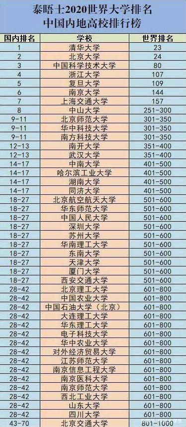 本次的世界大学排名中,我国内地高校有三所进入世界百强,有七所高校进入前200强。整体上比去年有很大的进步。具体的排名,可以看以下的榜单。