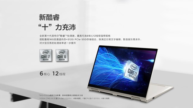 当然,拥有更好的设计、极佳的操作体验并非完结,在性能方面,联想YOGA C740也做到了非常合理的搭配。它搭载了最新第十代英特尔酷睿处理器,最高可选择6核心12线程强悍的规格,性能进一步提升,轻松处理更多任务,工作娱乐全然无忧。而最大支持16GB DDR4大容量内存,搭配512GB PCIe NVMe高速SSD,除满足日常文字编辑、影音娱乐外,还提供丰富的存储空间,对大型任务处理效率也进一步提升,带来更为全面的产品使用体验。