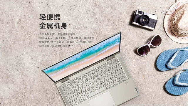 “匠心之作”说明联想YOGA对设计品质的追求,每一分每一寸都十分考究,它三面机身采用全金属铝冲压工艺打造,在保证机身重量的同时,提供更强的机身硬度,坚固耐用质感十足。此外,机身表面经过高精度喷砂处理,突破原有硬朗设计,边缘更圆润,手感更细腻。而14.9mm的机身厚度和1.38kg的机身重量,也让YOGA C740轻薄出众,尽显产品的精致典雅。键盘方面,YOGA C740支持2级白色背光,可通过Fn+空格组合键调节亮度,黑暗中打字更加高效。