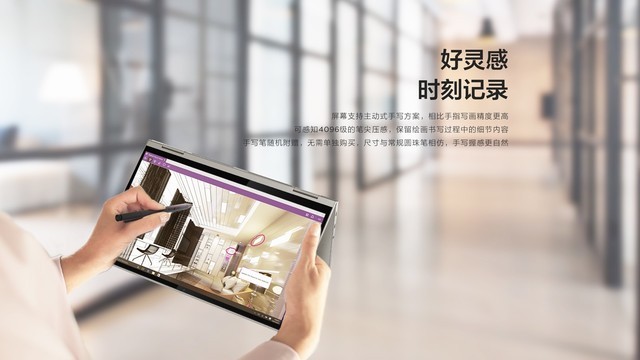 值得一提的是,联想YOGA C740在搭载翻转触控屏的同时,也支持4096级压感高精度手写笔的使用,使得屏幕支持主动式手写方案,相比手指写画精度更高。与此同时,用户可以通过手写笔直接输入文字或者绘制图形,保留绘画书写过程中的细节内容,也可以通过手写笔进行对电脑的控制操作,改变了以往PC产品的单一输入模式。手写笔随机附赠,无需单独购买,尺寸与常规圆珠笔相仿,手写握感更加自然。触控屏的交互方式和手写笔的应用更符合目前用户对产品的使用习惯,带来更为便捷高效的用户体验。