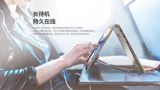 联想YOGA C740配备51Wh的大容量电池,带来长达13小时的续航时间,办公娱乐不断电。而且,它还支持PD大功率快充功能,充电一刻钟,续航时间可达2小时,AOAC全时在线功能,让整机可以低延迟接收消息推送,并能够使其从睡眠回到工作状态,只需不到0.5秒,让你时刻保持在线状态。