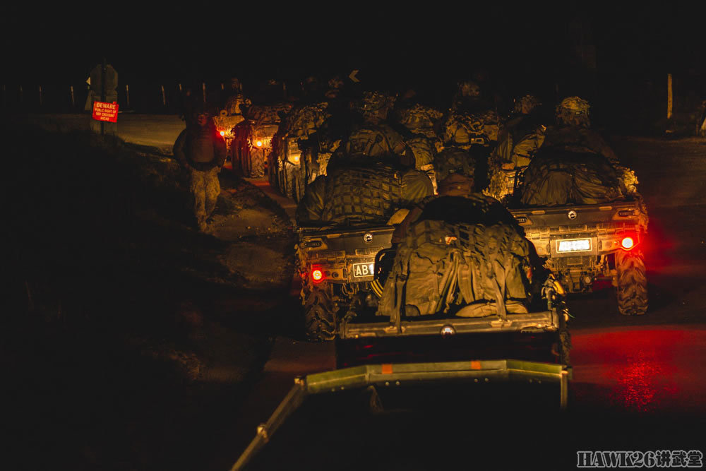 夜晚,演习仍在继续,拉脱维亚士兵驾驶英军的轻型全地形车进行远距离机动。
