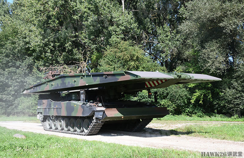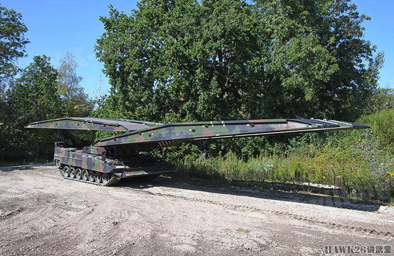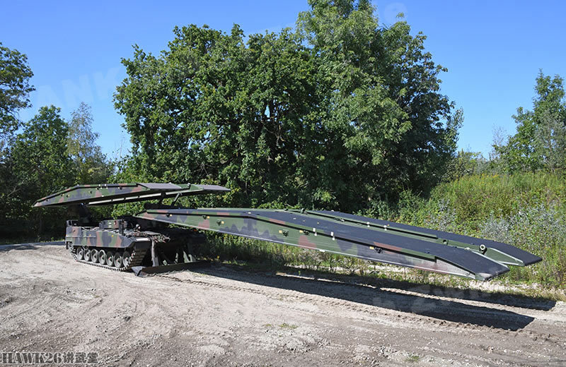 在这里,见到了最新型的“鬣蜥(Leguan)”坦克架桥车,这种坦克架桥车是2019年1月德国陆军刚刚接收的新型装备。该车是在“海狸(Biber)”坦克架桥车的基础上研制而来,从上世纪70年代开始,从豹1主战坦克底盘上改进而来的“海狸”坦克架桥车就一直在德国陆军服役。