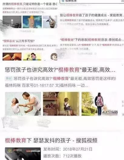 但如今打开网络搜索引擎,输入关键字,大家对“棍棒教育”却几乎是一边倒的质疑。