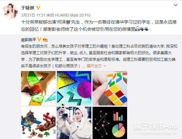 不过,她最近一次出现是今年3月,替她在清华的老师做宣传: