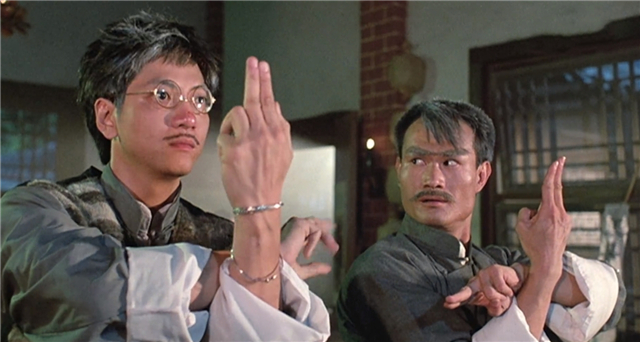 能被称为“千面”的演员不多,刘洵是其中一位,号称千面如来,曾是徐克御用配角,就算单单一个太监角色,也能演出不同花样来,比如《九品芝麻官》《笑傲江湖》《新龙门客栈》。《僵尸至尊》中他作为九叔林正英的师兄,两人结怨远程斗法,场面比较宏大,有种欧美丧尸片的节奏。最值得一提的是,九叔在这里还有感情戏和吻戏。