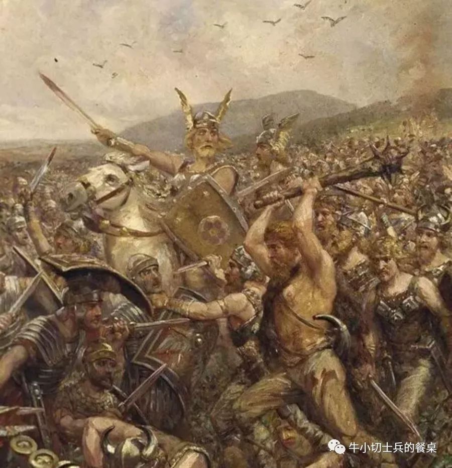 罗马人使用方阵战术在与高卢人的作战中,高卢的剑盾兵攻破了罗马人的侧翼后,三万罗马人和同盟军毫无反抗能力地就在阵位上被杀死。这埸惨败令罗马人意识到,长矛阵如果被突破就很难抵抗剑兵的进攻。罗马人对马其顿方阵进行了革命性改进,也就有了罗马小步兵方阵战术,即罗马军团。