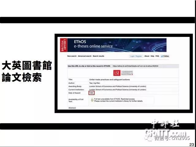 大英图书馆的论文检索系统中,查得到这本论文的纪录,证明了“论文曾经存在于图书馆”。