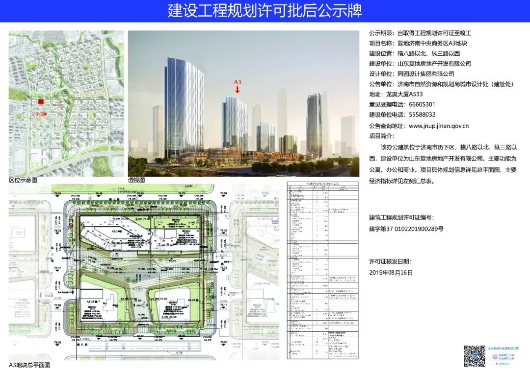 A-3地块共三栋楼,1栋36F、建筑高度129.4米的商业&公寓&办公楼,2栋4F商业&办公楼。