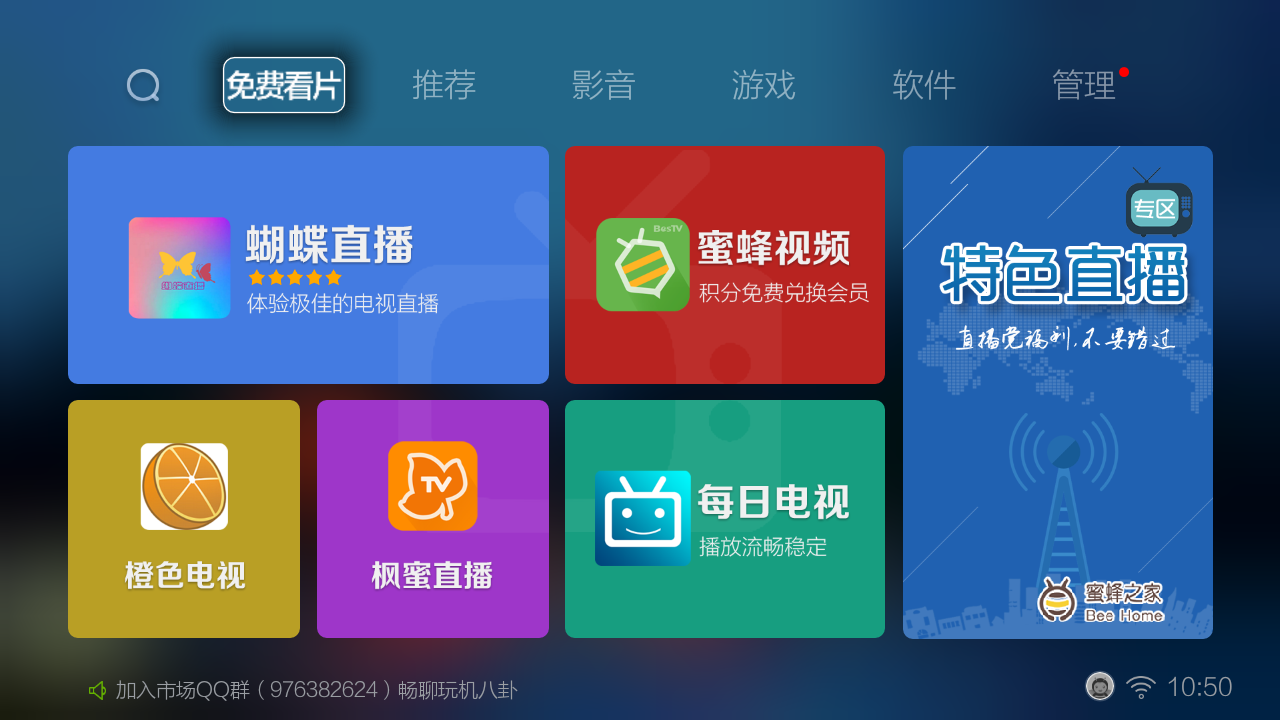 比如创维电视、TCL电视等,电视系统禁止安装外部应用。这时需要用额外的方法解决,如创维电视可以通过小程序安装软件,TCL电视可以安装【蜜蜂市场TCL专版】等