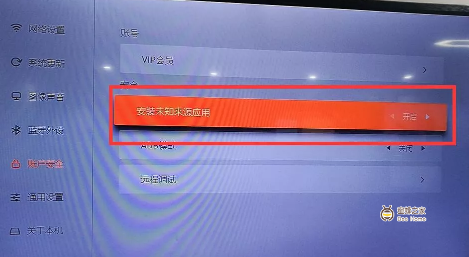 第一种情况:电视、盒子没有打开安装未知来源应用的权限