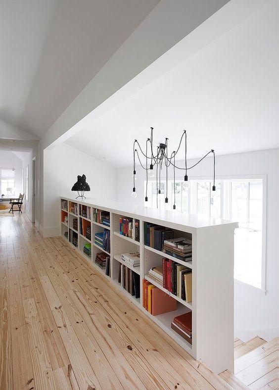 3、另外和光秃秃的扶手相比,书架的装饰效果明显更好。样式多样,还能够涂刷成各种颜色,与整个空间相匹配,家里档次和品质也是蹭蹭往上涨,书香气十足,装家里有面子,实用又漂亮。