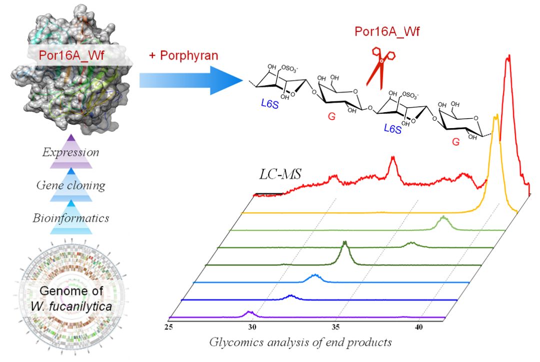 以Por16A_Wf为代表揭示了紫菜多糖酶类的生化性质,并为紫菜多糖的分子剪裁提供了作用方式清晰的新工具,有望对紫菜多糖的深入研究以及紫菜资源的高值化利用产生推动作用。