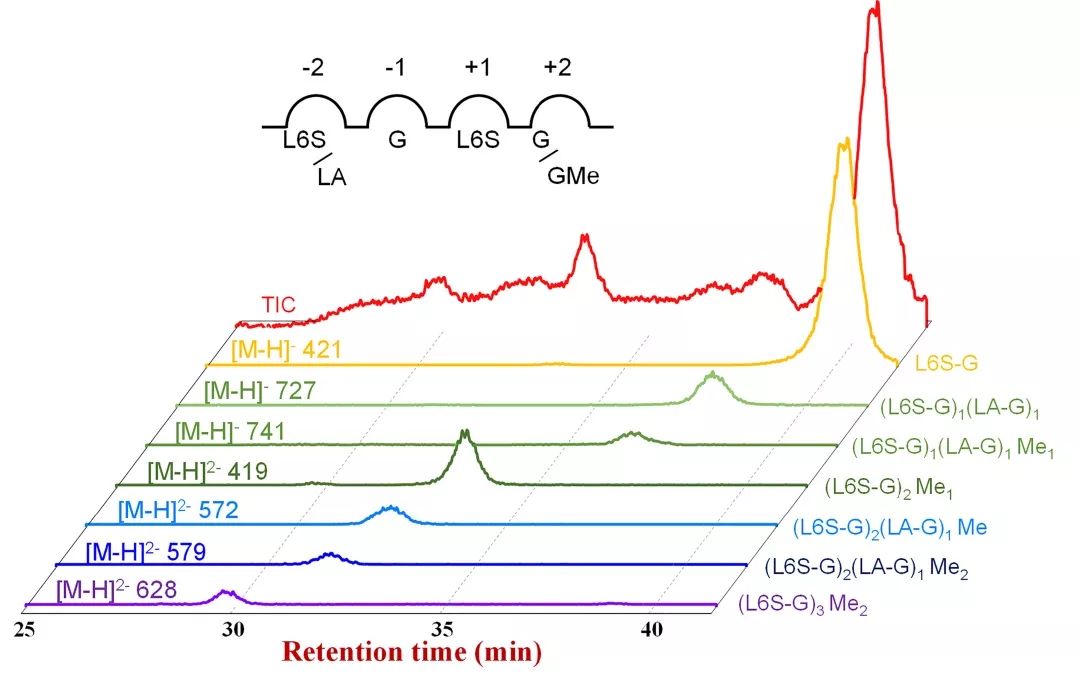 本研究利用糖组学策略,巧妙结合紫菜多糖异质性结构的化学本质,成功解析了紫菜多糖酶的精细作用位点。糖组学是组学研究领域的新兴方向,以糖组即样品中所有糖分子的集合为研究对象。本研究借助糖组学的思维,利用SEC-MS技术高通量检测了产物的糖组信息,简化了传统糖苷水解酶作用方式研究中“产物分离-组分鉴定-作用方式判断”的繁琐技术流程,破解了低丰度产物组分在分离过程中被遗漏导致作用方式结论不完整、不精细的技术难题,实现了对糖苷水解酶亚位点特异性的准确判断。