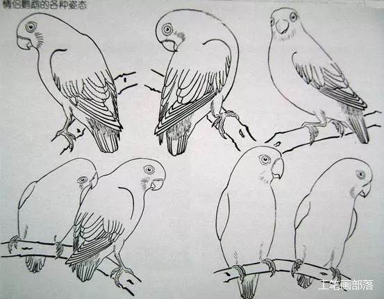 鹦鹉形态和白描示例